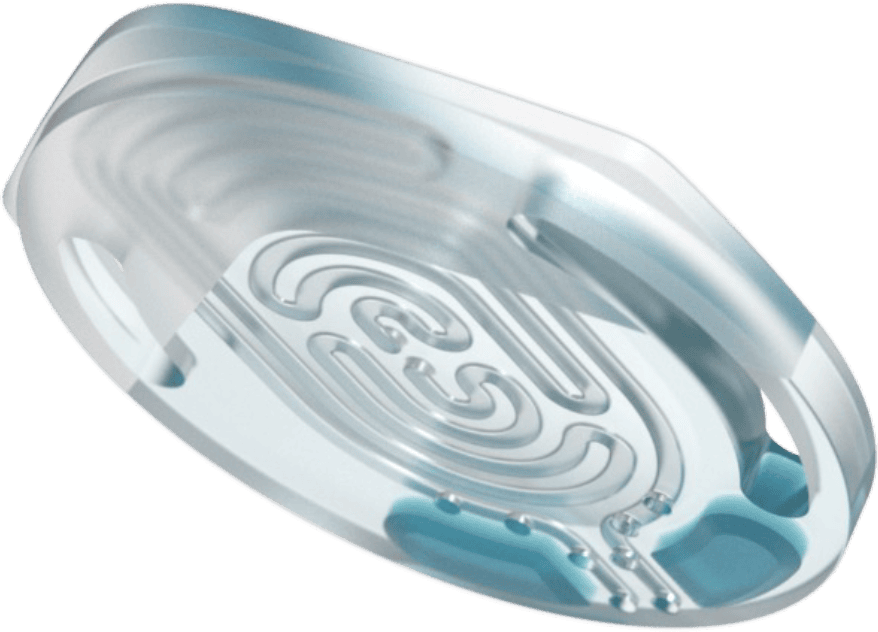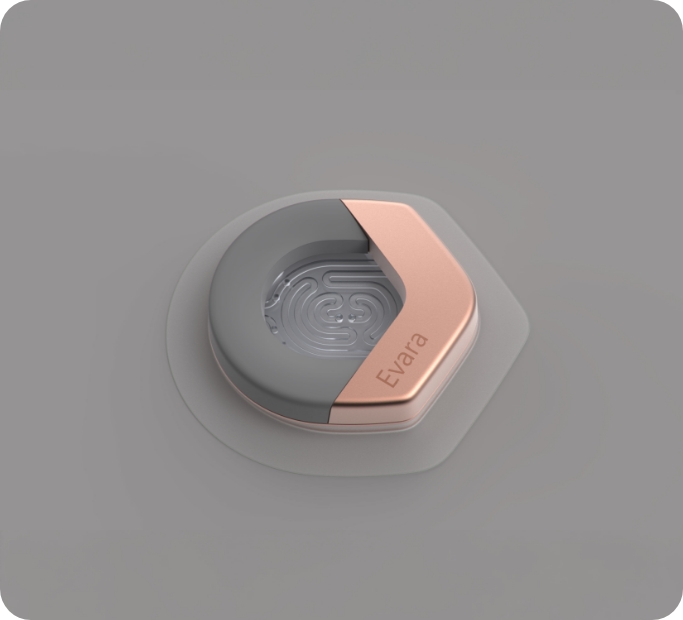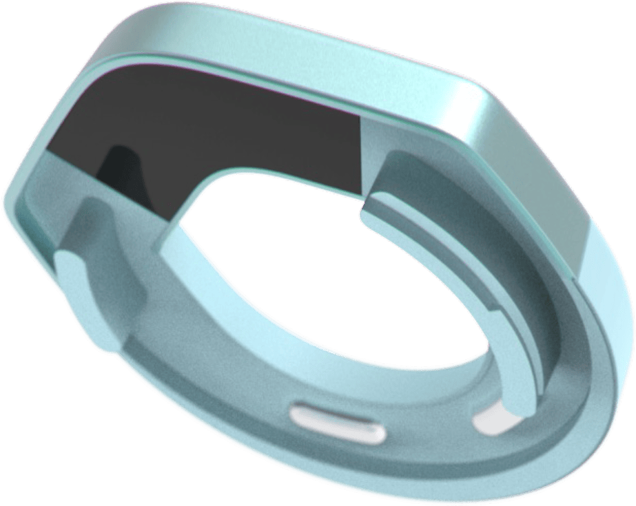 Continuous wear demands near-invisibility. Our team narrowed the design into a sleek sensor ring with two simple components: a micro-suction base plate that houses the sweat-inducing electrodes and sensor window, and a reusable sensor with a sweat-inducing gel and microfluidic plate to capture and analyze the sample seamlessly.