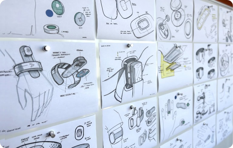 We pushed past the obvious, exploring wearables as headgear and wristbands to sleeves and patches, all ideally imagined for user comfort, low profile, and sleek design with textures and concepts inspired by the natural world. Our design team produced multiple variations and collaborated closely with Engineering, Regulatory, and Clinical Sciences, exploring and refining around usability, aesthetics, and medical standards to create design solutions embraced by patients.
